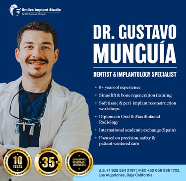 At Smiles Implant Studio we create healthy, beautiful smiles with advanced dental care tailored to your needs. Located in Los Algodones, Baja California México, we offer dental implants, cosmetic dentistry, braces, aligners, teeth whitening, and smile makeovers. Our modern clinic combines cutting-edge technology, competitive pricing, and a patient-first approach to ensure your comfort and satisfaction.